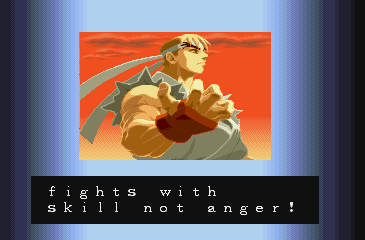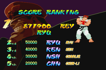| Adon | Akuma | Birdie | Charlie | Chun-Li | Dan | Guy | Ken | M.Bison | Rose | - Ryu - | Sagat | Sodom | | - 4-8 Star Difficulty - | 1-3 Star Difficulty | | - If The Regular Last Boss Is Fought - | If Akuma Is The Last Boss | |