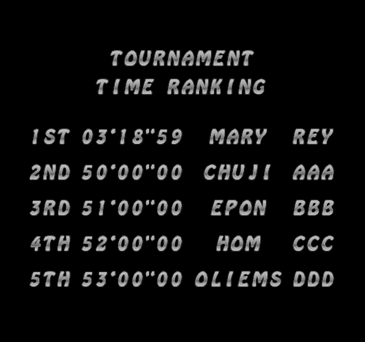 | Chuji | Epon | Fei | Gren | Hom | Illgoga | | - Mary - | Oliems | Mufu / Snork / Udan / Tori | | - Tournament Mode - | Quest Mode | |