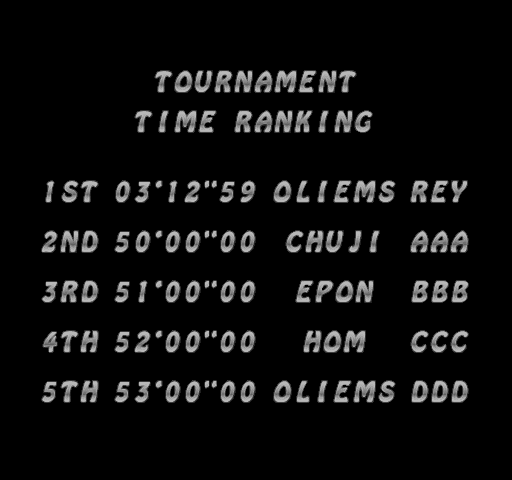 | Chuji | Epon | Fei | Gren | Hom | Illgoga | | Mary | - Oliems - | Mufu / Snork / Udan / Tori | | - Tournament Mode - | Quest Mode | |