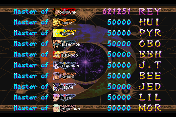| Home | BackTweet | - Vampire Savior Mode - | Vampire Savior 2 Mode | Vampire Hunter 2 Mode | | - Standard Mode - | Shadow / Marionette Mode | | Anakaris | Baby Bonnie Hood | Bishamon | Demitri | - Donovan - | Felicia | Hsien-Ko | Huitzil | J.Talbain | | Jedah | L.Rapter | Lilith | Morrigan | Oboro Bishamon | Pyron | Q-Bee | Rikuo | Sasquatch | Victor |