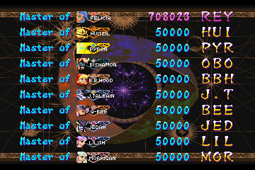 | Home | BackTweet | - Vampire Savior Mode - | Vampire Savior 2 Mode | Vampire Hunter 2 Mode | | - Standard Mode - | Shadow / Marionette Mode | | Anakaris | Baby Bonnie Hood | Bishamon | Demitri | Donovan | - Felicia - | Hsien-Ko | Huitzil | J.Talbain | | Jedah | L.Rapter | Lilith | Morrigan | Oboro Bishamon | Pyron | Q-Bee | Rikuo | Sasquatch | Victor |