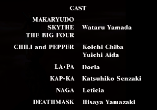 | - Shion - | Albiole | Skythe | Deathmask | Headless Harn | Kap. Ka | | Fangore | La. Pa | Chili And Pepper | Naga | Drethdok | Makaryudo | |