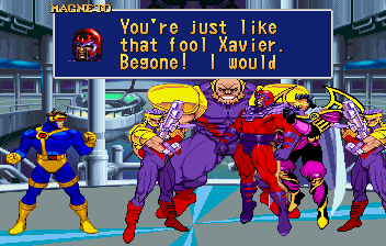 | - Cyclops - | Wolverine | Ice Man | Colossus | Psylocke | Storm | | Silver Samurai | Spiral | Omega Red | Sentinel | Akuma | |