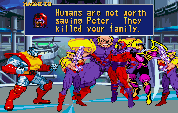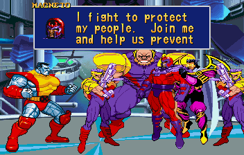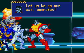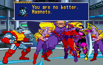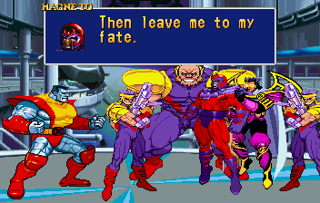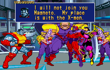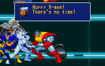 | Cyclops | Wolverine | Ice Man | - Colossus - | Psylocke | Storm | | Silver Samurai | Spiral | Omega Red | Sentinel | Akuma | |