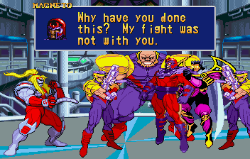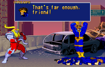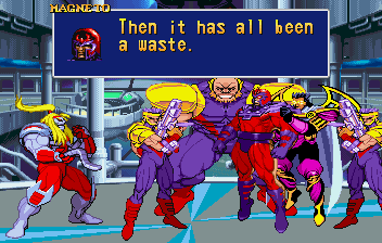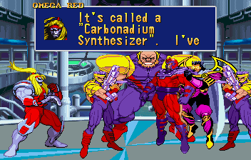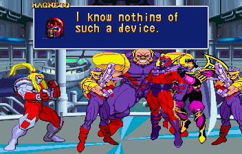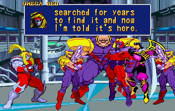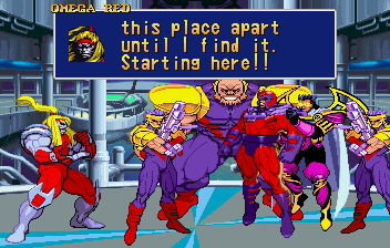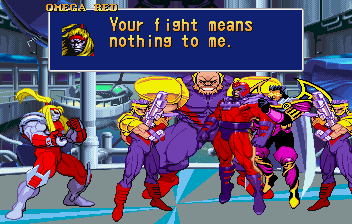 | Cyclops | Wolverine | Ice Man | Colossus | Psylocke | Storm | | Silver Samurai | Spiral | - Omega Red - | Sentinel | Akuma | |