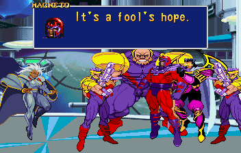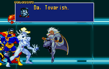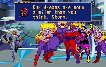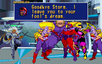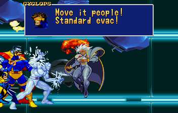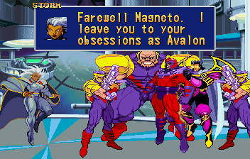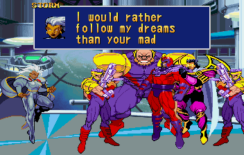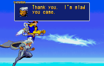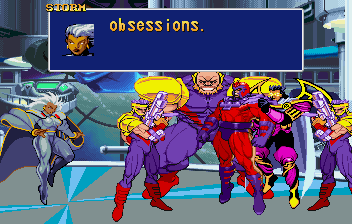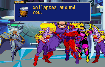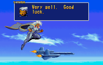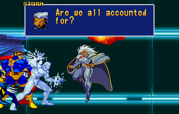 | Cyclops | Wolverine | Ice Man | Colossus | Psylocke | - Storm - | | Silver Samurai | Spiral | Omega Red | Sentinel | Akuma | |