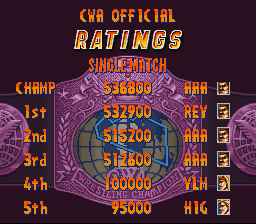 | Used Continues | - Didn't Use Continues - | | 1st Run | - 2nd Run - | | - Haggar - | Biff | Gunloc | Oni | Titan | Stingr | Grater | Rasta | | - Single Match - | Team Battle Royal | |