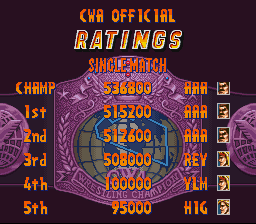 | Used Continues | - Didn't Use Continues - | | 1st Run | - 2nd Run - | | Haggar | - Biff - | Gunloc | Oni | Titan | Stingr | Grater | Rasta | | - Single Match - | Team Battle Royal | |