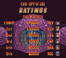| - Used Continues - | Didn't Use Continues | | 1st Run | - 2nd Run - | | Haggar | Biff | Gunloc | - Oni - | Titan | Stingr | Grater | Rasta | | - Single Match - | Team Battle Royal | |