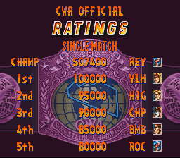 | Used Continues | - Didn't Use Continues - | | 1st Run | - 2nd Run - | | Haggar | Biff | Gunloc | Oni | Titan | - Stingr - | Grater | Rasta | | - Single Match - | Team Battle Royal | |