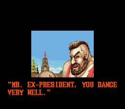 | Ryu | Ken | E. Honda | Chun Li | | - Zangief - | Dhalsim | Guile | Blanka | | - Difficulty 3-7 - | Difficulty 0-2 | |