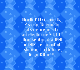 | Versus | Stage Clear | Puzzle | - Endless Mode- | | - 1 Player Game - | CPU Switch On | |