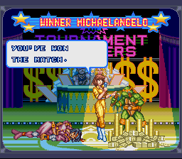 | Home | BackTweet | - Tournament - | Story Battle | | - Good Ending - | Bad Ending | | Leo | Don | Raph | - Mike - | Aska | Armaggon | Wingnut | Chrome Dome | War | Shredder |