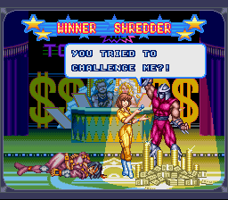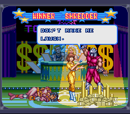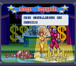| Home | BackTweet | - Tournament - | Story Battle | | - Good Ending - | Bad Ending | | Leo | Don | Raph | Mike | Aska | Armaggon | Wingnut | Chrome Dome | War | - Shredder - |