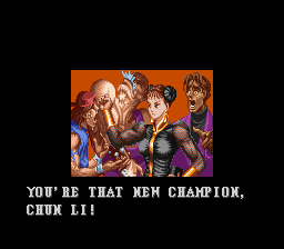 | Ryu | Ken | - Chun Li - | Blanka | Guile | Zangief | Dhalsim | E.Honda | | Fei Long | Cammy | T.Hawk | Dee Jay | Balrog | Vega | Sagat | M.Bison | | - Difficulty 4-8 - | Difficulty 1-3 | | - Super Battle - | Tournament Battle | |