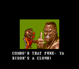 | Ryu | Ken | Chun Li | Blanka | Guile | Zangief | Dhalsim | E.Honda | | Fei Long | Cammy | T.Hawk | - Dee Jay - | Balrog | Vega | Sagat | M.Bison | | - Difficulty 4-8 - | Difficulty 1-3 | | - Super Battle - | Tournament Battle | |