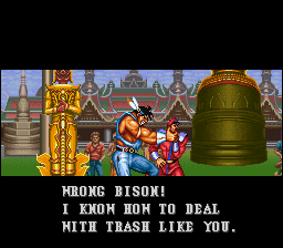 | Ryu | Ken | Chun Li | Blanka | Guile | Zangief | Dhalsim | E.Honda | | Fei Long | Cammy | - T.Hawk - | Dee Jay | Balrog | Vega | Sagat | M.Bison | | - Difficulty 4-8 - | Difficulty 1-3 | | - Super Battle - | Tournament Battle | |