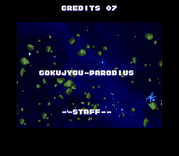 | Dracula Kun | Vic Viper | Takosuke | Twinbee | Pentaro | | Hikaru | Mambo | Michael | - Koitsu - | Goemon | Upa | | - 1st Player - | 2nd Player | | - Standard Ending - | Special Ending | |