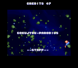 | Dracula Kun | Vic Viper | Takosuke | Twinbee | Pentaro | | Hikaru | Mambo | Michael | Koitsu | Goemon | - Upa - | | - 1st Player - | 2nd Player | | - Standard Ending - | Special Ending | |