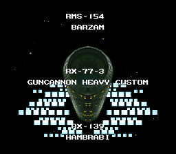 | - Gundam Mk II - | Zeta Gundam | Type 100 | | Easy | - Normal / Hard - | Black | | - 1 Player - | 2 Players | |