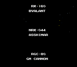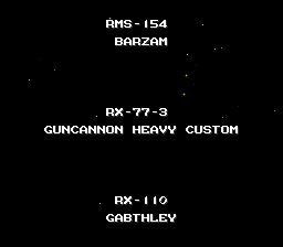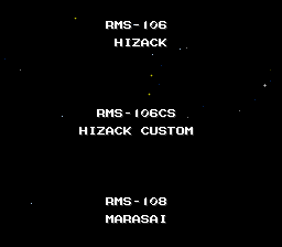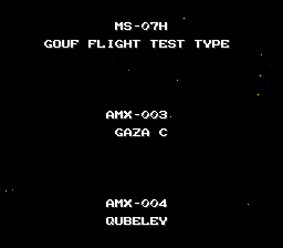 | Gundam Mk II | Zeta Gundam | - Type 100 - | | Easy | - Normal / Hard - | Black | | - 1 Player - | 2 Players | |