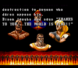 | Ryu | Ken | Chun-Li | Guile | E.Honda | Zangief | | Blanka | Dhalsim | Balrog | Vega | Sagat | - M.Bison - | | - Difficulty 4-8 - | Difficulty 1-3 | |