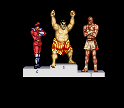 | Ryu | Ken | Chun-Li | Guile | - E.Honda - | Zangief | | Blanka | Dhalsim | Balrog | Vega | Sagat | M.Bison | | - Difficulty 4-8 - | Difficulty 1-3 | |