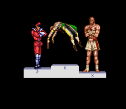 | Ryu | Ken | Chun-Li | Guile | E.Honda | Zangief | | Blanka | Dhalsim | Balrog | - Vega - | Sagat | M.Bison | | - Difficulty 4-8 - | Difficulty 1-3 | |