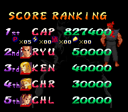 | Ryu | Ken | Sakura | Charlie | Dan | Zangief | Chun-Li | Dhalsim | Rolento | Guy | | Birdie | Gen | Katana | Adon | Rose | Sagat | M.Bison | - Akuma - | |