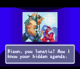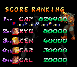 | Ryu | Ken | Sakura | Charlie | Dan | Zangief | Chun-Li | Dhalsim | Rolento | Guy | | - Birdie - | Gen | Katana | Adon | Rose | Sagat | M.Bison | Akuma | |