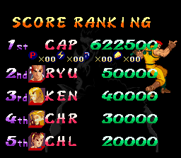 | Ryu | Ken | Sakura | Charlie | Dan | Zangief | Chun-Li | Dhalsim | - Rolento - | Guy | | Birdie | Gen | Katana | Adon | Rose | Sagat | M.Bison | Akuma | |