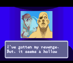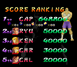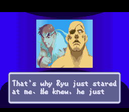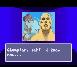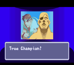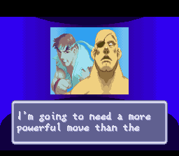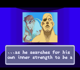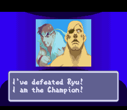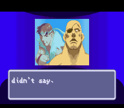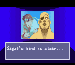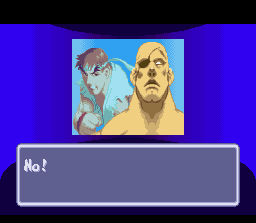 | Ryu | Ken | Sakura | Charlie | Dan | Zangief | Chun-Li | Dhalsim | Rolento | Guy | | Birdie | Gen | Katana | Adon | Rose | - Sagat - | M.Bison | Akuma | |