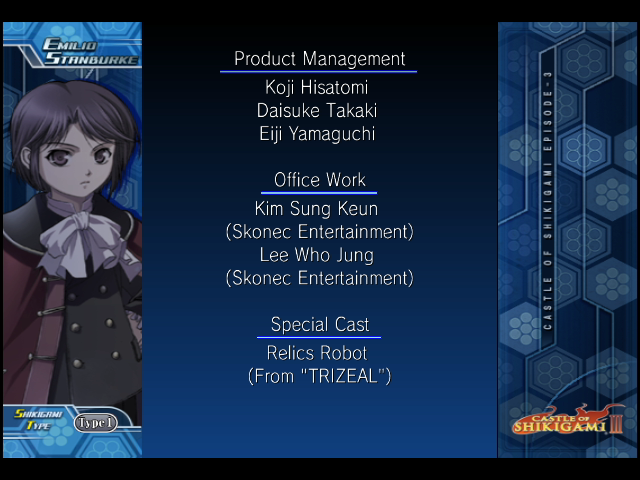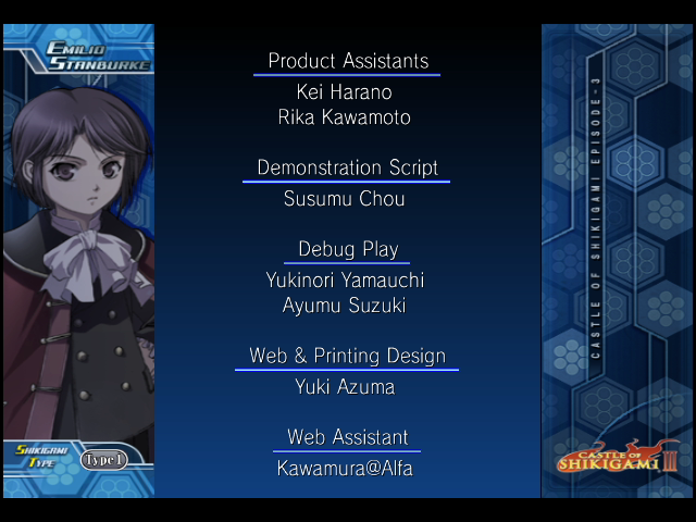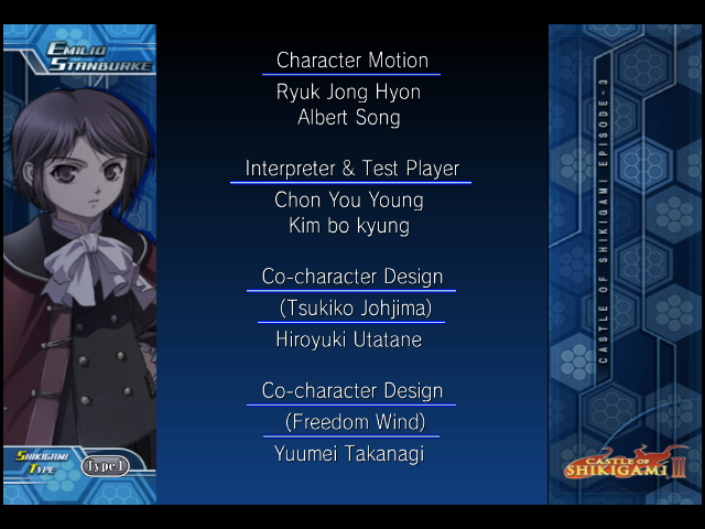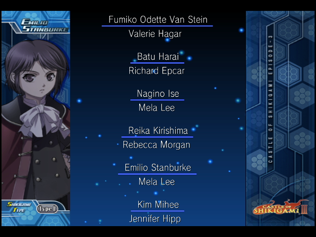 | Batu Harai | - Emilio Stanburke - | Fumiko O.V | Gennojo Hyuga | Kohtaro Kuga | | Mihee Kim | Munchausen | Nagino Ise | Reika Kirishima | Roger Sasuke | | - Solo Play - | Team Play | |