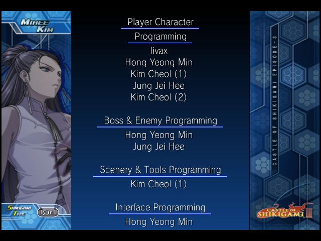 | Batu Harai | Emilio Stanburke | Fumiko O.V | Gennojo Hyuga | Kohtaro Kuga | | - Mihee Kim - | Munchausen | Nagino Ise | Reika Kirishima | Roger Sasuke | | - Solo Play - | Team Play | |