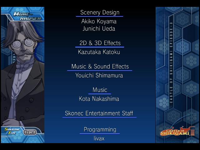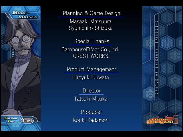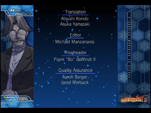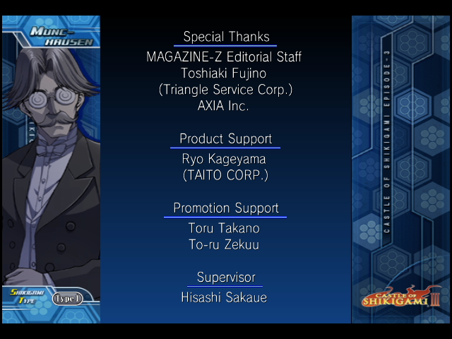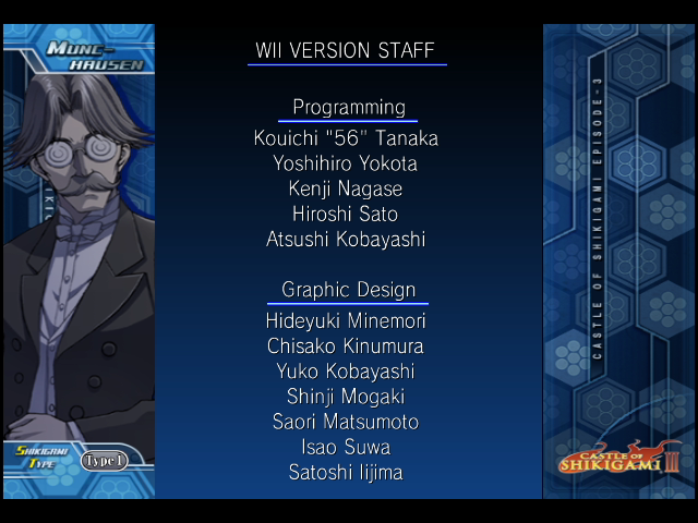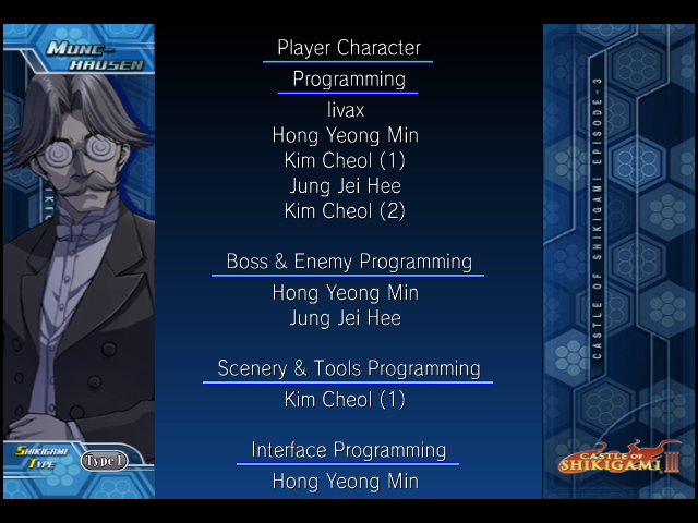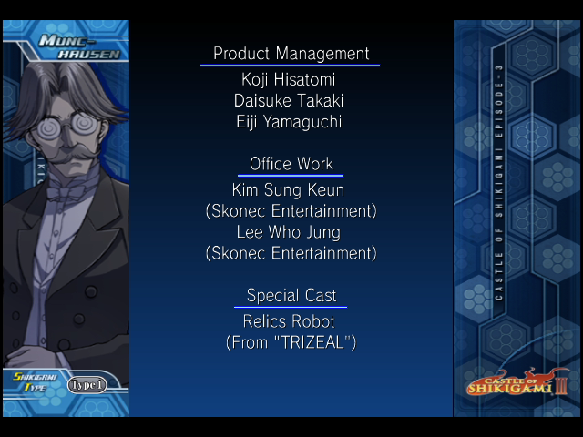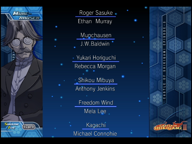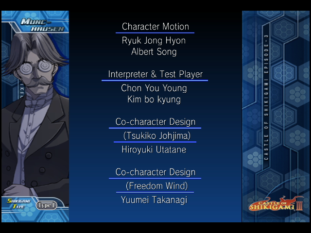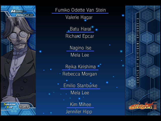 | Batu Harai | Emilio Stanburke | Fumiko O.V | Gennojo Hyuga | Kohtaro Kuga | | Mihee Kim | - Munchausen - | Nagino Ise | Reika Kirishima | Roger Sasuke | | - Solo Play - | Team Play | |