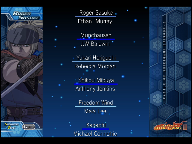 | Batu Harai | Emilio Stanburke | Fumiko O.V | Gennojo Hyuga | Kohtaro Kuga | | Mihee Kim | Munchausen | Nagino Ise | Reika Kirishima | - Roger Sasuke - | | - Solo Play - | Team Play | |