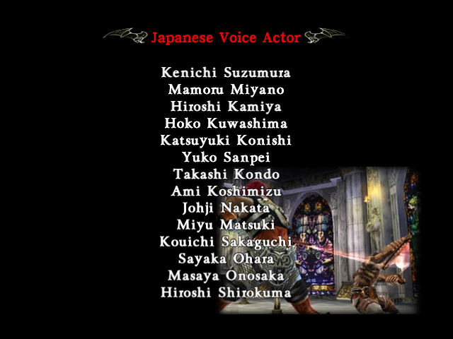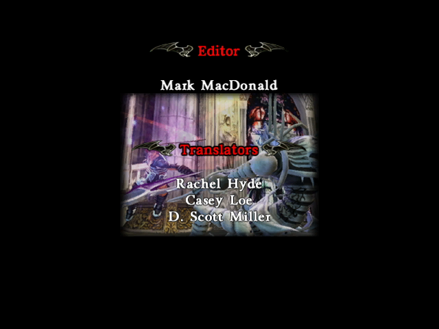 | - Simon - | Aeon | Alucard | Carmilla | Cornell | Death | Dracula | Eric | Golem | Grant | Maria | Shanoa | Sypha | Trevor | | 1st Run | - 2nd Run - | | - Story Mode - | Castle Mode | |