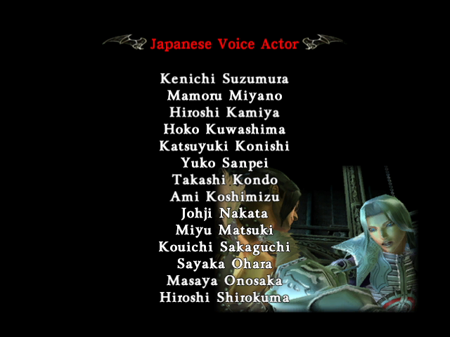 | Simon | Aeon | - Alucard - | Carmilla | Cornell | Death | Dracula | Eric | Golem | Grant | Maria | Shanoa | Sypha | Trevor | | 1st Run | - 2nd Run - | | - Story Mode - | Castle Mode | |