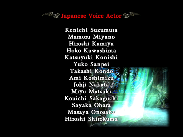 | Simon | Aeon | Alucard | Carmilla | - Cornell - | Death | Dracula | Eric | Golem | Grant | Maria | Shanoa | Sypha | Trevor | | 1st Run | - 2nd Run - | | - Story Mode - | Castle Mode | |