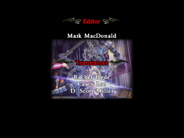 | Simon | Aeon | Alucard | Carmilla | Cornell | - Death - | Dracula | Eric | Golem | Grant | Maria | Shanoa | Sypha | Trevor | | 1st Run | - 2nd Run - | | - Story Mode - | Castle Mode | |