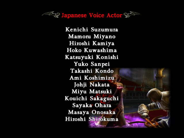 | Simon | Aeon | Alucard | Carmilla | Cornell | Death | - Dracula - | Eric | Golem | Grant | Maria | Shanoa | Sypha | Trevor | | 1st Run | - 2nd Run - | | - Story Mode - | Castle Mode | |