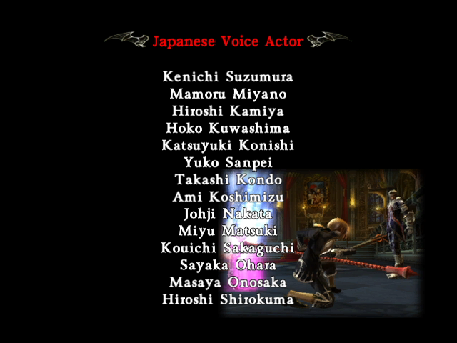 | Simon | Aeon | Alucard | Carmilla | Cornell | Death | Dracula | - Eric - | Golem | Grant | Maria | Shanoa | Sypha | Trevor | | 1st Run | - 2nd Run - | | - Story Mode - | Castle Mode | |