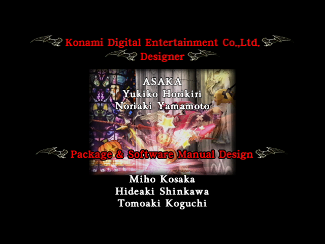 | Simon | Aeon | Alucard | Carmilla | Cornell | Death | Dracula | Eric | Golem | Grant | - Maria - | Shanoa | Sypha | Trevor | | 1st Run | - 2nd Run - | | - Story Mode - | Castle Mode | |