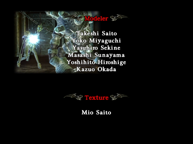 | Simon | Aeon | Alucard | Carmilla | Cornell | Death | Dracula | Eric | Golem | Grant | Maria | Shanoa | - Sypha - | Trevor | | 1st Run | - 2nd Run - | | - Story Mode - | Castle Mode | |