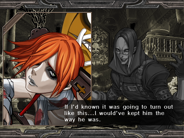| Home | BackTweet | Arcade Mode | - Story Mode - | | - A.B.A - | Anji-Mito | Axl Low | Baiken | Bridget | Chipp Zanuff | Dizzy | Eddie | Faust | I-No | Jam | Johnny | Justice | Kliff Undersn | | Ky-Kiske | May | Millia Rage | Order-Sol | Potemkin | Robo-Ky | Slayer | Sol-Badguy | Testament | Venom | Zappa | | If Your Final Opponent Is I-No | - If Your Final Opponent Is Dizzy - |