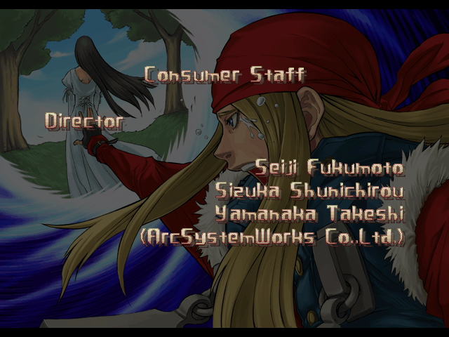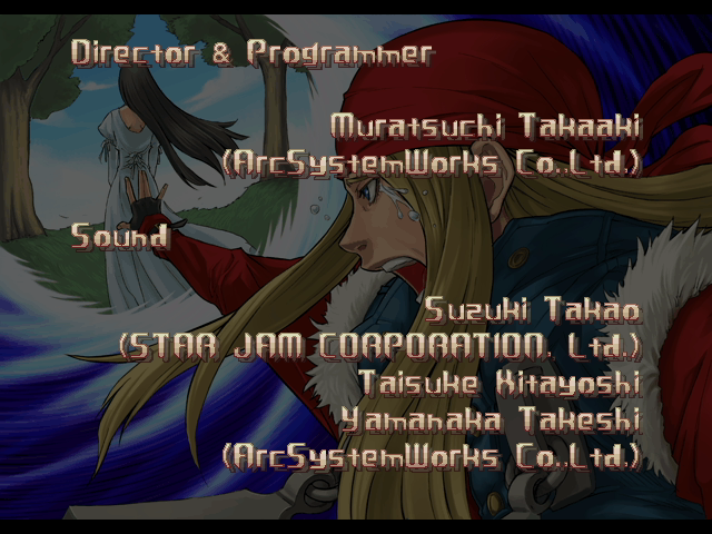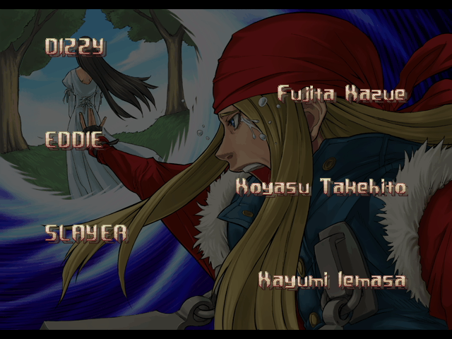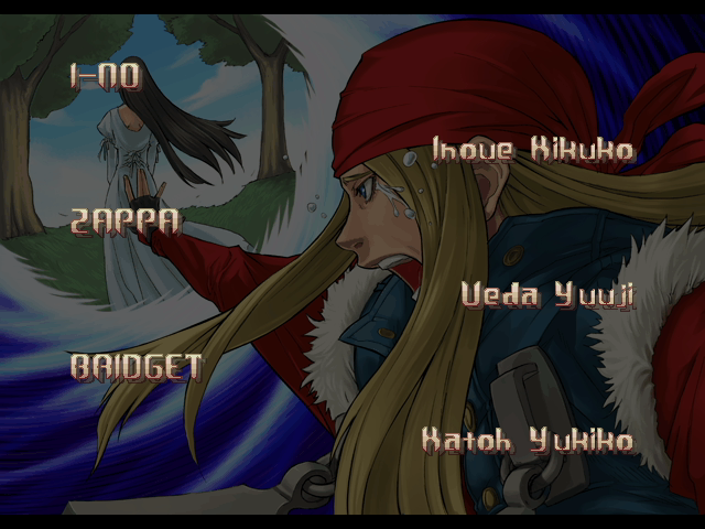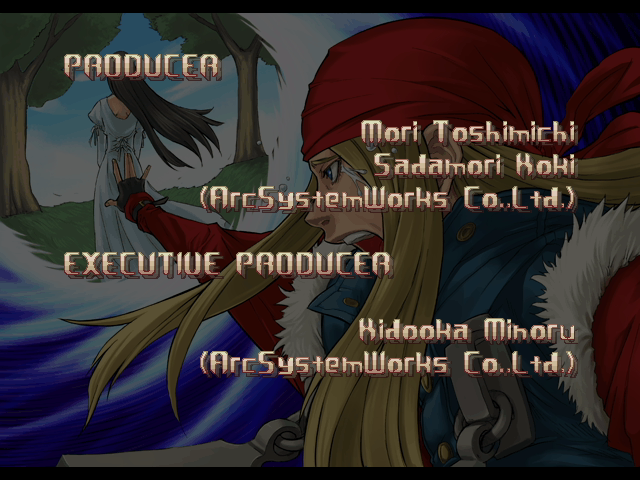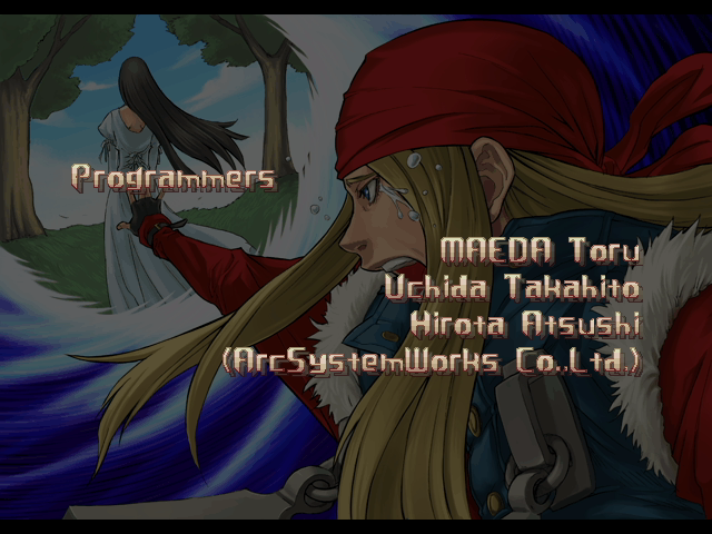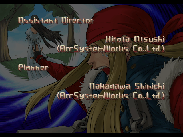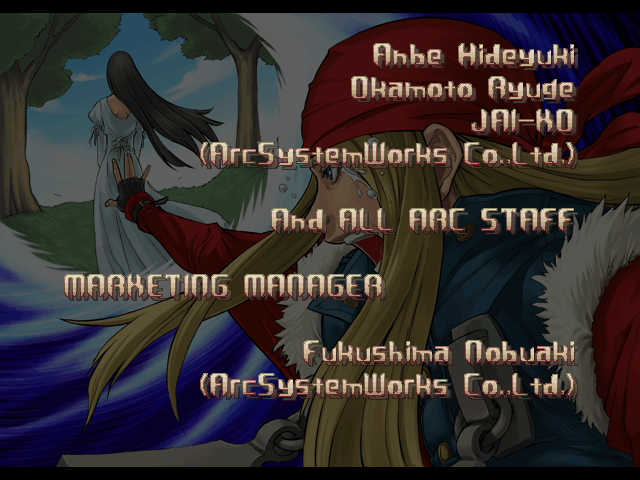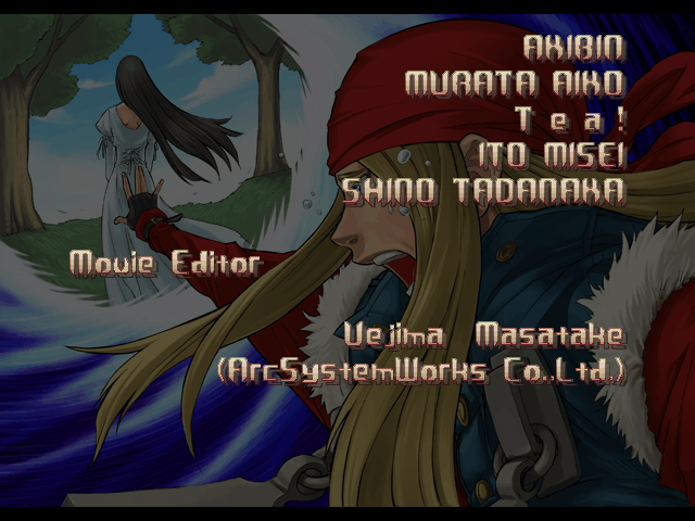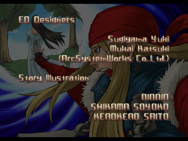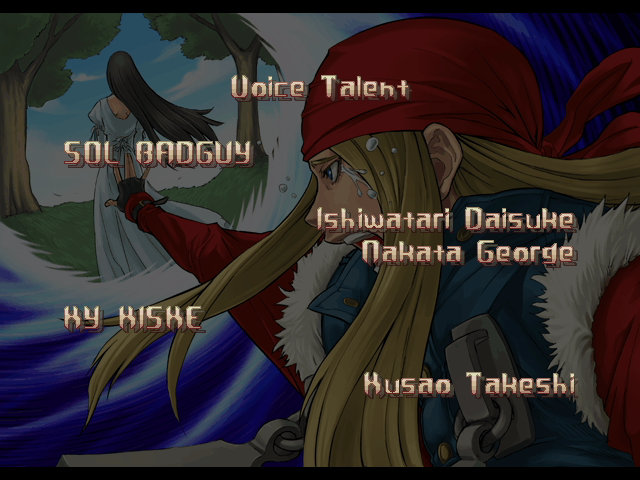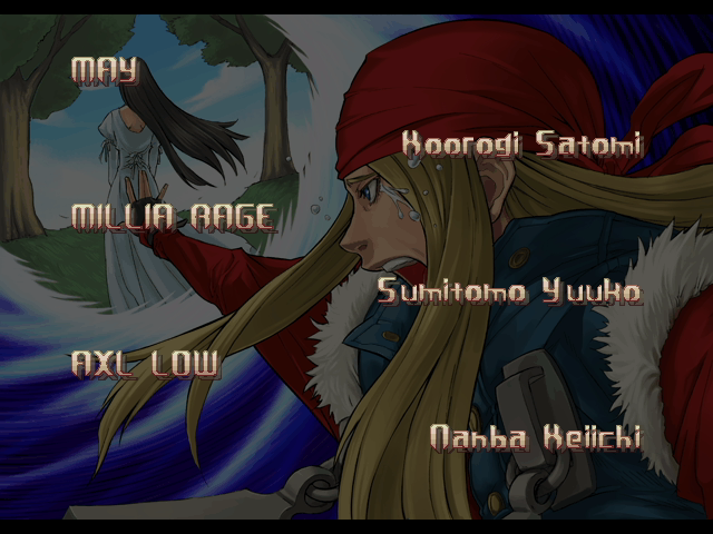 | - If Your Final Opponent Is Justice - | If You Defeat Axl Low With An Instant Kill | If Your Final Opponent Is Anji-Mito | | A.B.A | Anji-Mito | - Axl Low - | Baiken | Bridget | Chipp Zanuff | Dizzy | Eddie | Faust | I-No | Jam | Johnny | Justice | Kliff Undersn | | Ky-Kiske | May | Millia Rage | Order-Sol | Potemkin | Robo-Ky | Slayer | Sol-Badguy | Testament | Venom | Zappa | | Arcade Mode | - Story Mode - | |