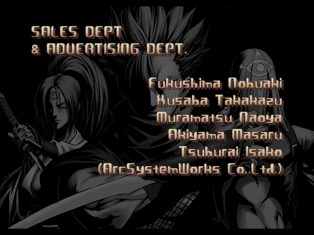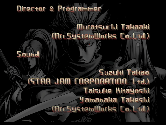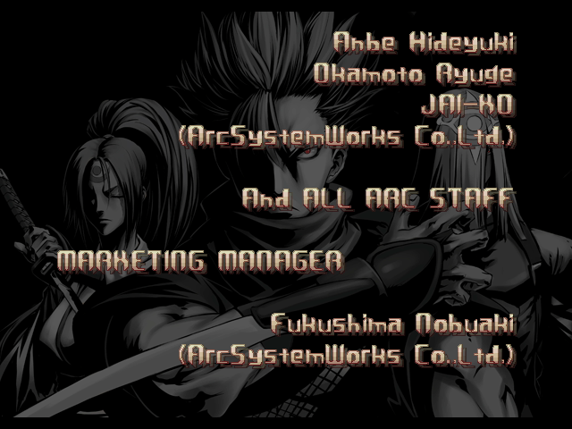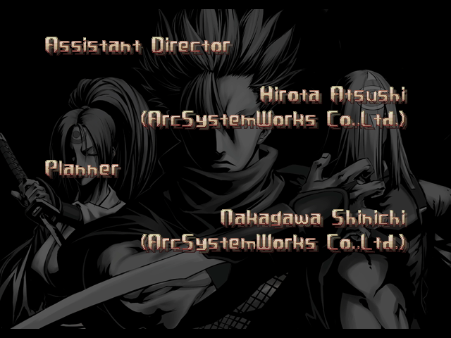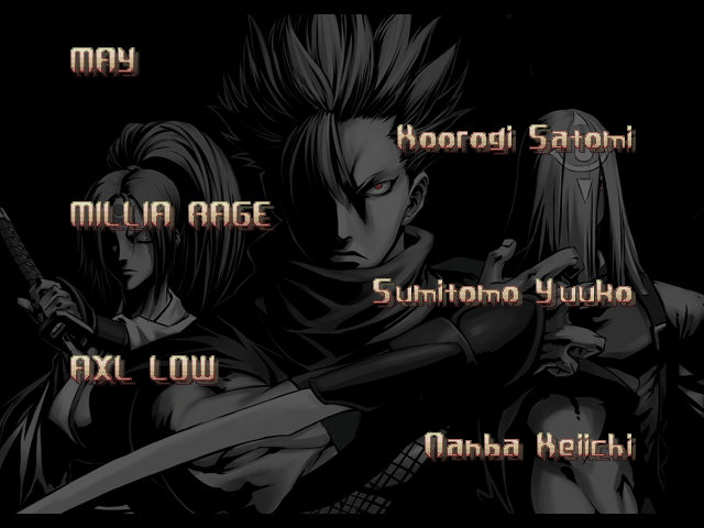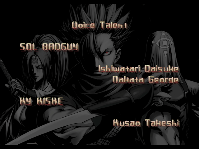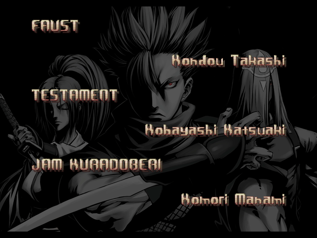 | If Your Final Opponent Is Potemkin | If Your Final Opponent Is Robo-Ky | - If Your Final Opponent Is Baiken - | | A.B.A | Anji-Mito | Axl Low | Baiken | Bridget | - Chipp Zanuff - | Dizzy | Eddie | Faust | I-No | Jam | Johnny | Justice | Kliff Undersn | | Ky-Kiske | May | Millia Rage | Order-Sol | Potemkin | Robo-Ky | Slayer | Sol-Badguy | Testament | Venom | Zappa | | Arcade Mode | - Story Mode - | |