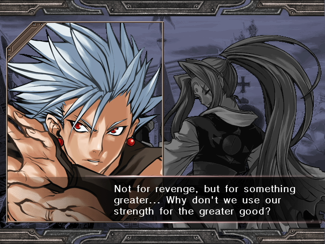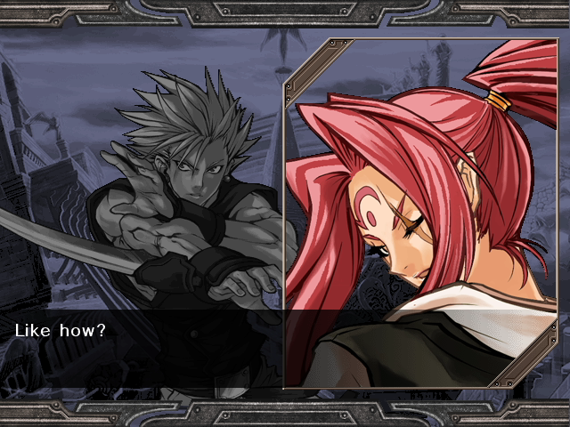 | Home | BackTweet | Arcade Mode | - Story Mode - | | A.B.A | Anji-Mito | Axl Low | Baiken | Bridget | - Chipp Zanuff - | Dizzy | Eddie | Faust | I-No | Jam | Johnny | Justice | Kliff Undersn | | Ky-Kiske | May | Millia Rage | Order-Sol | Potemkin | Robo-Ky | Slayer | Sol-Badguy | Testament | Venom | Zappa | | If Your Final Opponent Is Potemkin | If Your Final Opponent Is Robo-Ky | - If Your Final Opponent Is Baiken - |