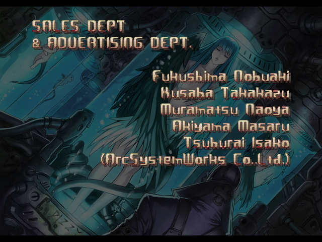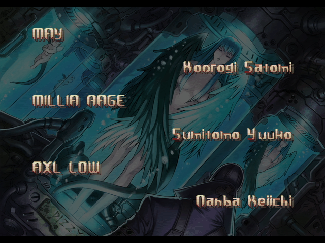 | If Your Final Opponent Is Order-Sol | - If Your Final Opponent Is A.B.A - | | A.B.A | Anji-Mito | Axl Low | Baiken | Bridget | Chipp Zanuff | - Dizzy - | Eddie | Faust | I-No | Jam | Johnny | Justice | Kliff Undersn | | Ky-Kiske | May | Millia Rage | Order-Sol | Potemkin | Robo-Ky | Slayer | Sol-Badguy | Testament | Venom | Zappa | | Arcade Mode | - Story Mode - | |