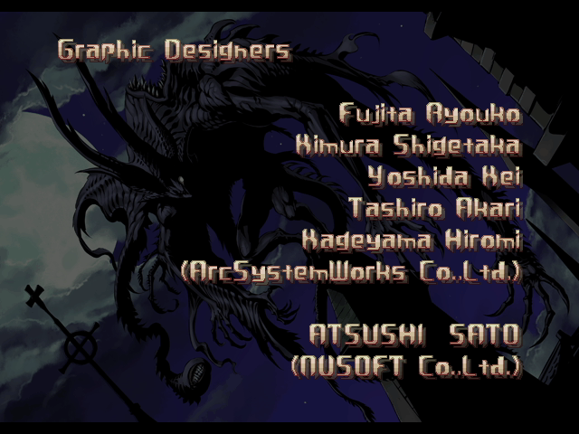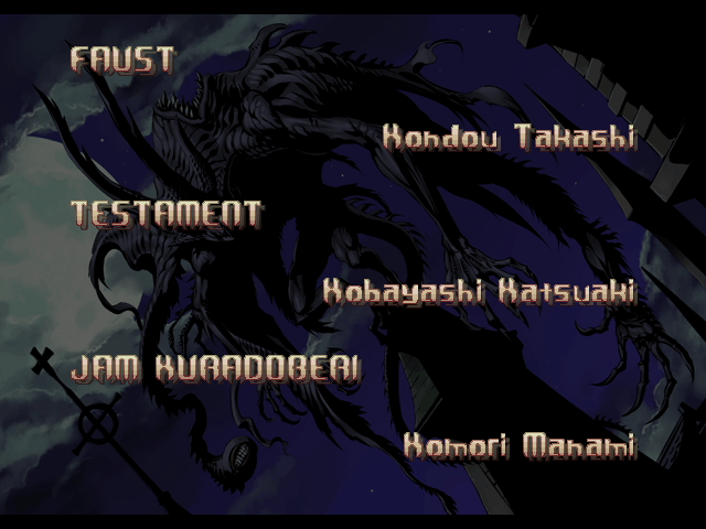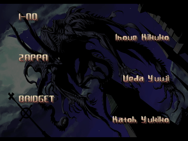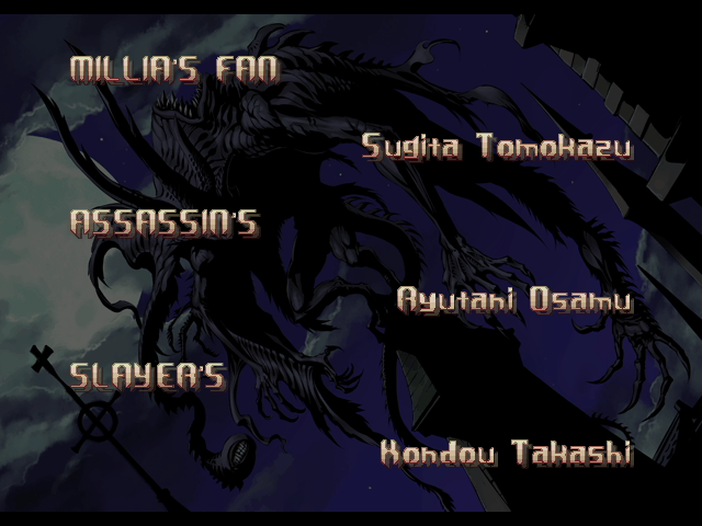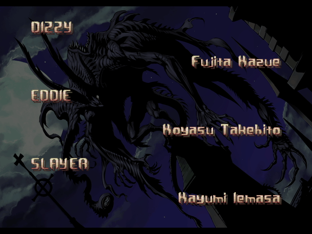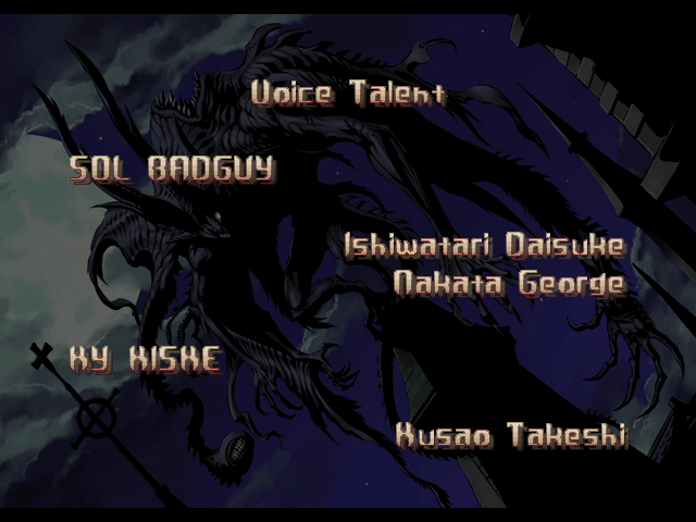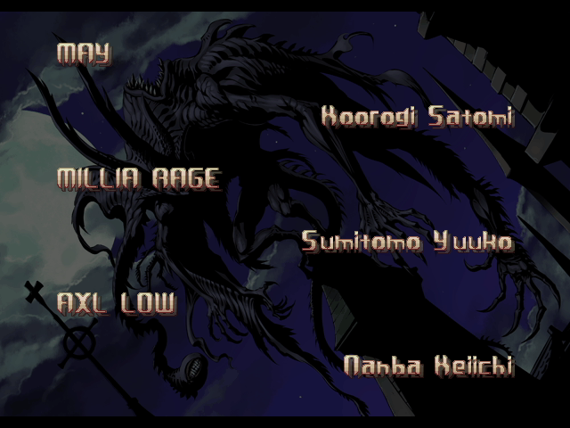 | If Your Final Opponent Is Millia Rage | - If Your Final Opponent Is Venom - | | A.B.A | Anji-Mito | Axl Low | Baiken | Bridget | Chipp Zanuff | Dizzy | - Eddie - | Faust | I-No | Jam | Johnny | Justice | Kliff Undersn | | Ky-Kiske | May | Millia Rage | Order-Sol | Potemkin | Robo-Ky | Slayer | Sol-Badguy | Testament | Venom | Zappa | | Arcade Mode | - Story Mode - | |